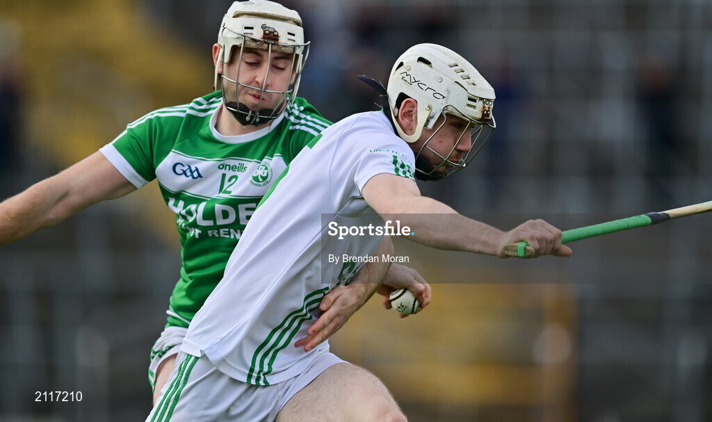 7 November 2021; Jordan Molloy of O'Loughlin Gaels in action against Joe Cuddihy of Ballyhale Shamrocks during the Kilkenny County Senior Club Hurling Championship Final match between Ballyhale Shamrocks and O'Loughlin Gaels at UPMC Nowlan Park in Kilkenny. Photo by Brendan Moran/Sportsfile