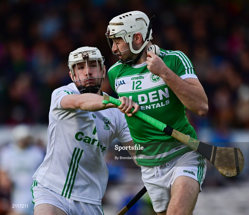 7 November 2021; Joe Cuddihy of Ballyhale Shamrocks is tackled by Jordan Molloy of O'Loughlin Gaels during the Kilkenny County Senior Club Hurling Championship Final match between Ballyhale Shamrocks and O'Loughlin Gaels at UPMC Nowlan Park in Kilkenny. Photo by Brendan Moran/Sportsfile