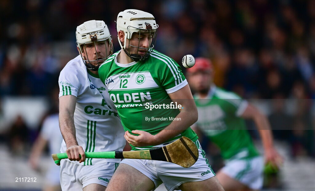7 November 2021; Joe Cuddihy of Ballyhale Shamrocks is tackled by Jordan Molloy of O'Loughlin Gaels during the Kilkenny County Senior Club Hurling Championship Final match between Ballyhale Shamrocks and O'Loughlin Gaels at UPMC Nowlan Park in Kilkenny. Photo by Brendan Moran/Sportsfile