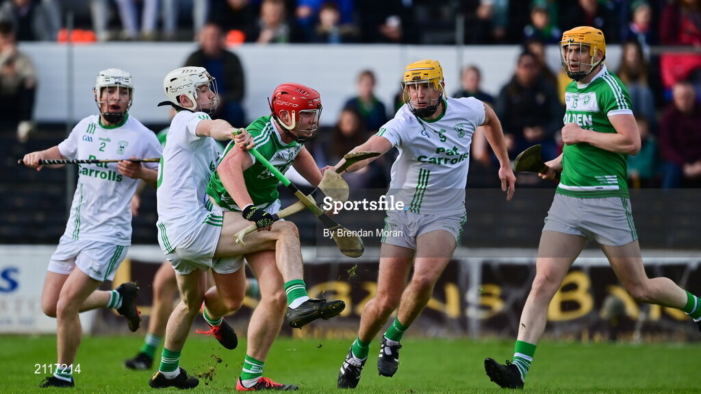 7 November 2021; Adrian Mullen of Ballyhale Shamrocks is tackled by Jordan Molloy and Cian Loy of O'Loughlin Gaels during the Kilkenny County Senior Club Hurling Championship Final match between Ballyhale Shamrocks and O'Loughlin Gaels at UPMC Nowlan Park in Kilkenny. Photo by Brendan Moran/Sportsfile