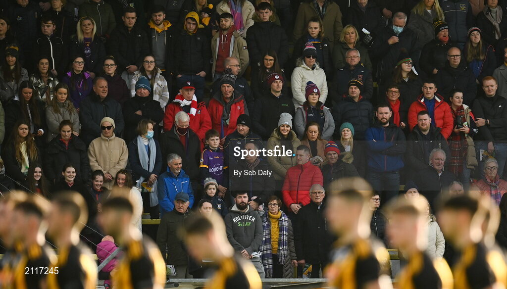 7 November 2021; Spectators stand for a minutes silence before the Meath County Senior Club Football Championship Final match between St Peter's Dunboyne and Wolfe Tones at Páirc Tailteann in Navan, Meath. Photo by Seb Daly/Sportsfile