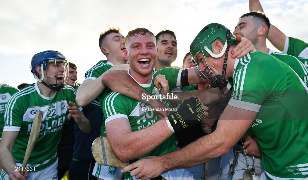 7 November 2021; Ballyhale Shamrocks players, including Adrian Mullen, centre, and Eoin Cody, right, celebrate after the Kilkenny County Senior Club Hurling Championship Final match between Ballyhale Shamrocks and O'Loughlin Gaels at UPMC Nowlan Park in Kilkenny. Photo by Brendan Moran/Sportsfile