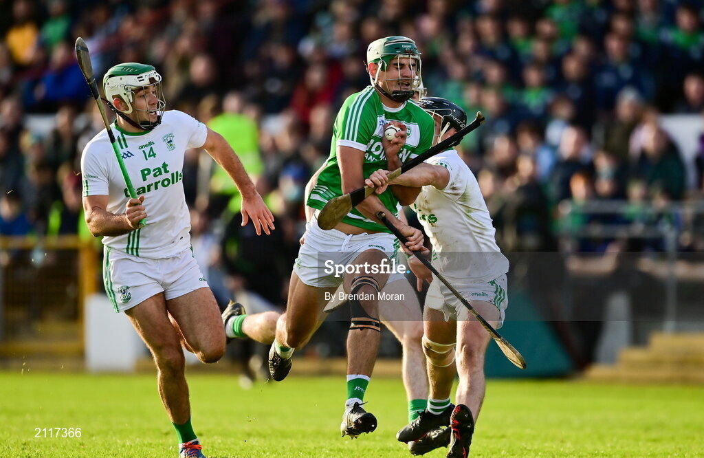 7 November 2021; Brian Butler of Ballyhale Shamrocks races clear of Paddy Deegan, left, and Mikey Butler of O'Loughlin Gaels on the way to scoring his side's third goal during the Kilkenny County Senior Club Hurling Championship Final match between Ballyhale Shamrocks and O'Loughlin Gaels at UPMC Nowlan Park in Kilkenny. Photo by Brendan Moran/Sportsfile