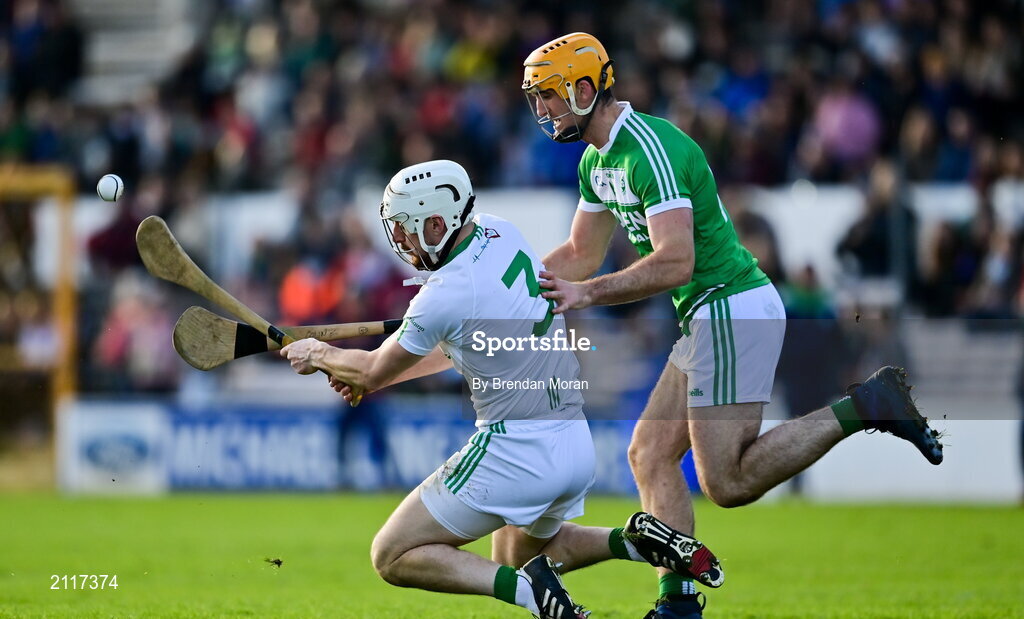 7 November 2021; Tony Forristal of O'Loughlin Gaels clears under pressure from Colin Fennelly of Ballyhale Shamrocks during the Kilkenny County Senior Club Hurling Championship Final match between Ballyhale Shamrocks and O'Loughlin Gaels at UPMC Nowlan Park in Kilkenny. Photo by Brendan Moran/Sportsfile