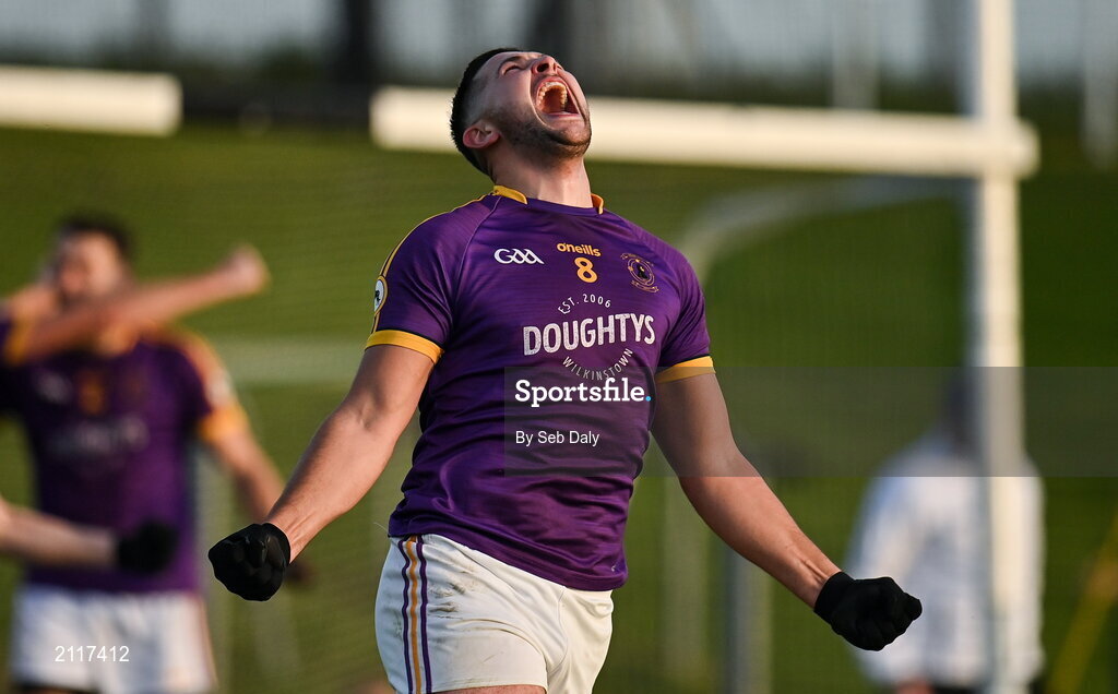 7 November 2021; Pádraic Diamond of Wolfe Tones celebrates at the final whistle after his side's victory in the Meath County Senior Club Football Championship Final match between St Peter's Dunboyne and Wolfe Tones at Páirc Tailteann in Navan, Meath. Photo by Seb Daly/Sportsfile
