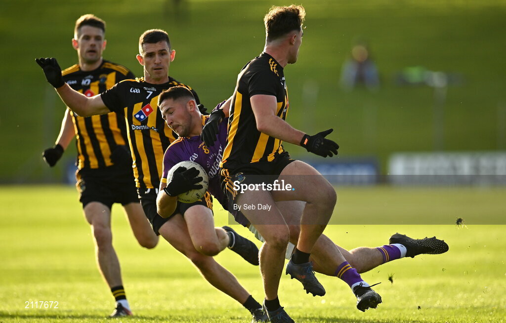 7 November 2021; Pádraic Diamond of Wolfe Tones in action against Shane McEntee, left, and Jordan McLoughlin of St Peter's Dunboyne during the Meath County Senior Club Football Championship Final match between St Peter's Dunboyne and Wolfe Tones at Páirc Tailteann in Navan, Meath. Photo by Seb Daly/Sportsfile
