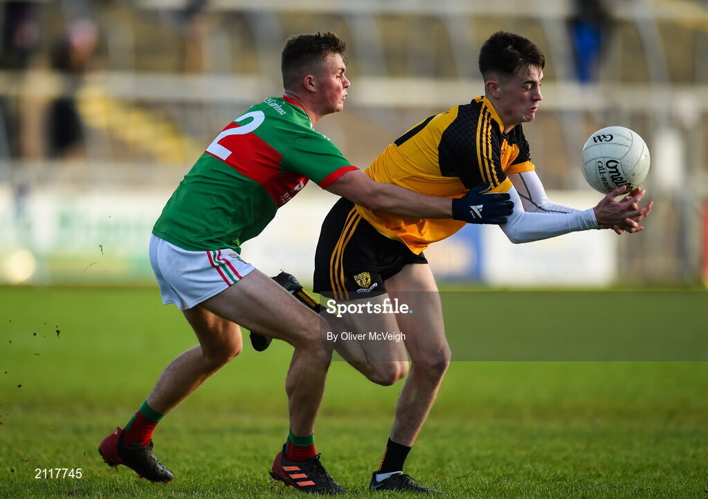 7 November 2021; Ben Smith of Ramor United reacts after being taken down by Cormac Brady of Gowna during the Cavan County Senior Club Football Championship Final match between Gowna and Ramor United at Kingspan Breffni in Cavan. Photo by Oliver McVeigh/Sportsfile