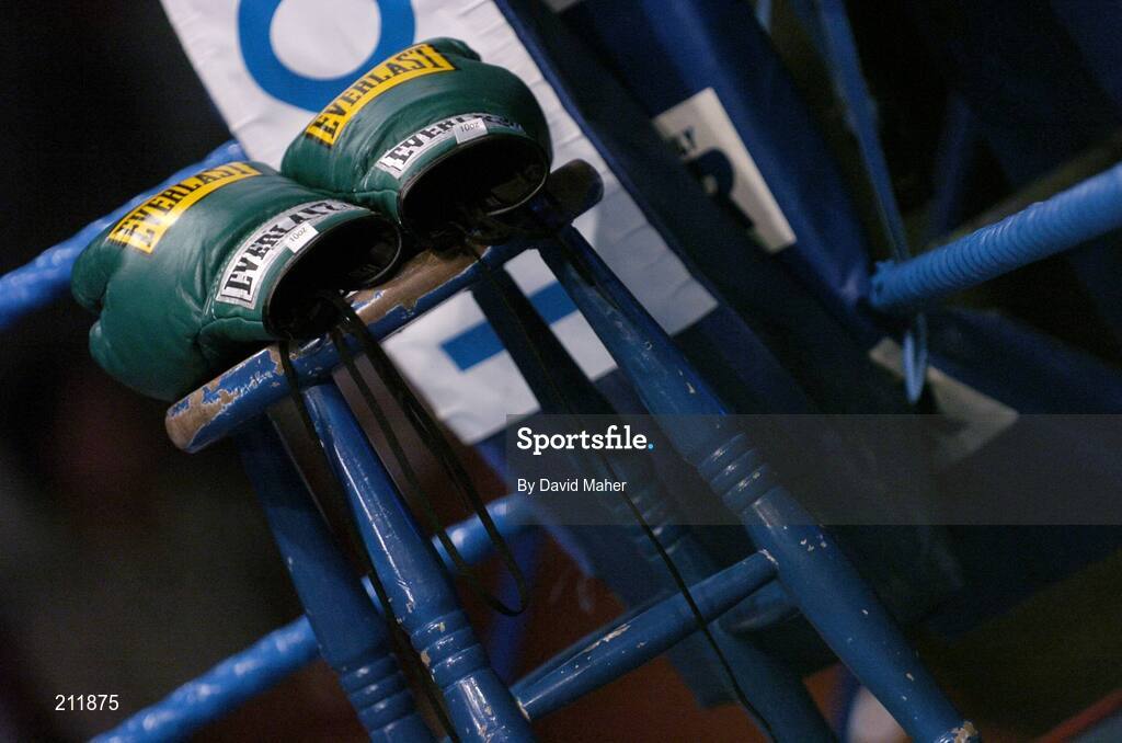 3 June 2006; Boxing gloves on stool. Vacant Irish Light Welterweight Title, Oisin Fagan.v.Jeff Thomas, National Stadium, South Circular Road, Dublin. Picture credit: David Maher / SPORTSFILE