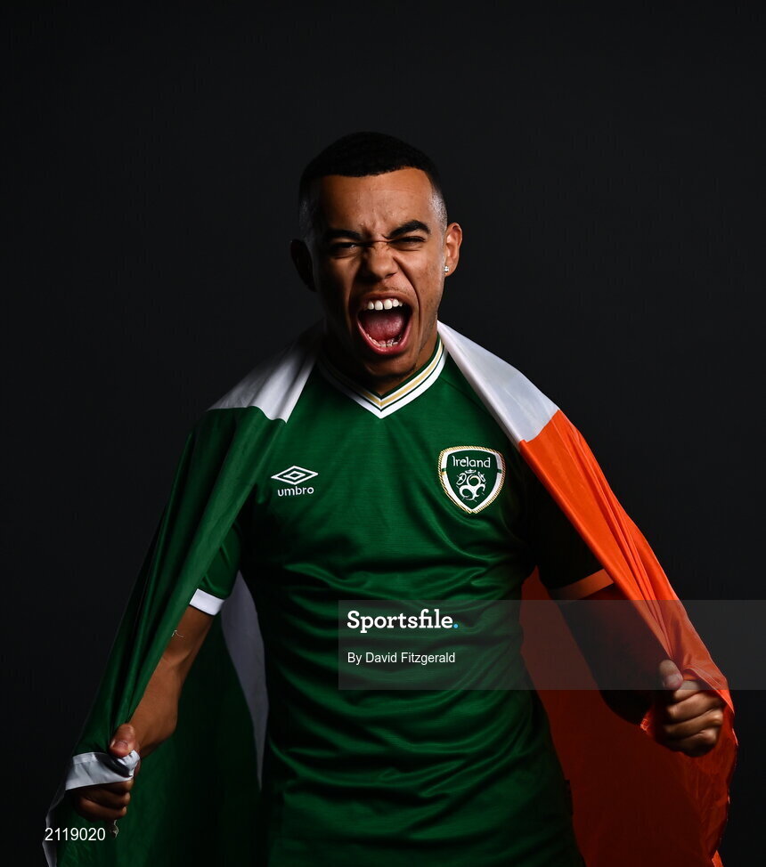 9 November 2021; Tyreik Wright during a Republic of Ireland Men's U21 portrait session at the Carlton Hotel in Tyrrelstown, Dublin. Photo by David Fitzgerald/Sportsfile