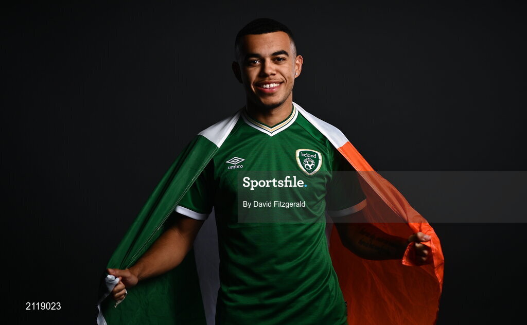 9 November 2021; Tyreik Wright during a Republic of Ireland Men's U21 portrait session at the Carlton Hotel in Tyrrelstown, Dublin. Photo by David Fitzgerald/Sportsfile
