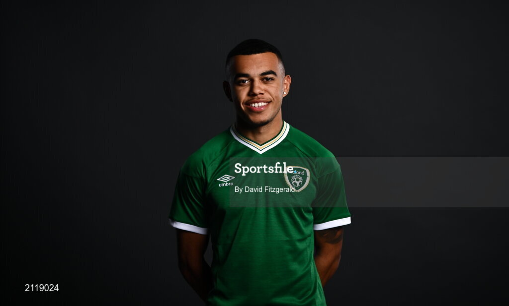 9 November 2021; Tyreik Wright during a Republic of Ireland Men's U21 portrait session at the Carlton Hotel in Tyrrelstown, Dublin. Photo by David Fitzgerald/Sportsfile