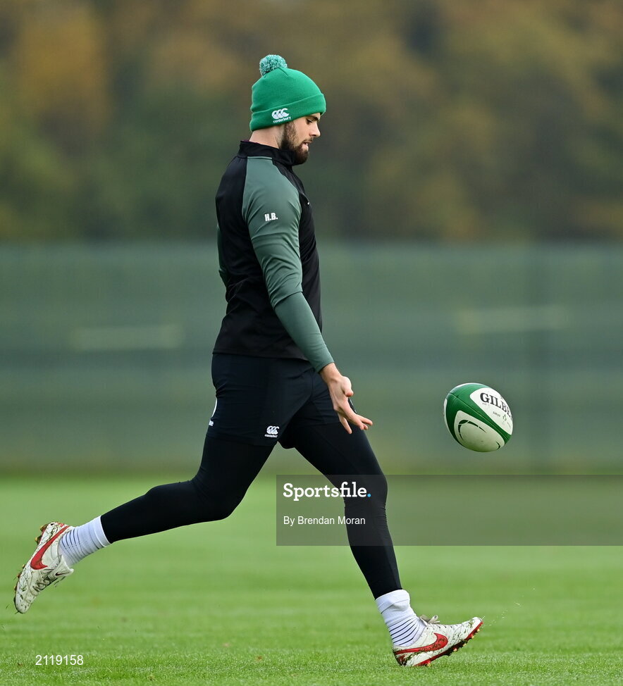 10 November 2021; Harry Byrne during Ireland rugby squad training at Carton House in Maynooth, Kildare. Photo by Brendan Moran/Sportsfile