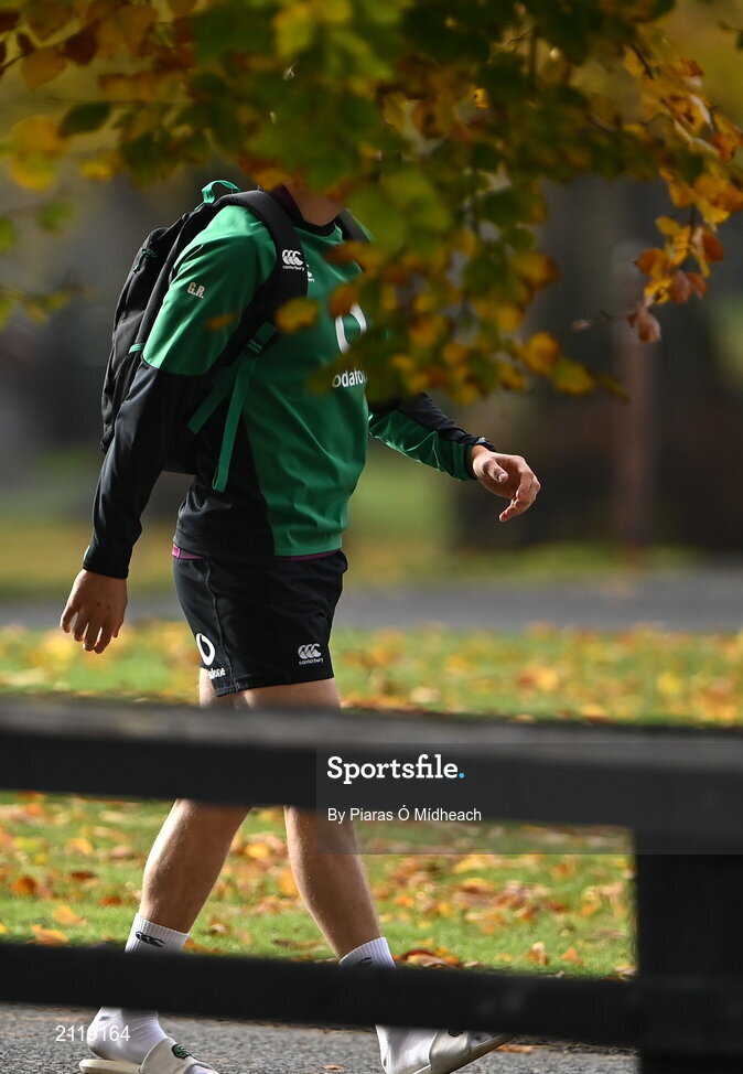 10 November 2021; Garry Ringrose arrives for Ireland rugby squad training at Carton House in Maynooth, Kildare. Photo by Piaras Ó Mídheach/Sportsfile