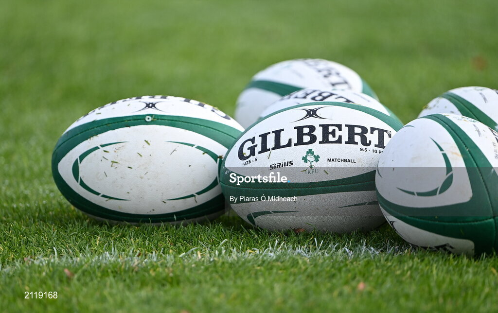 10 November 2021; A general view of rugby balls at Ireland rugby squad training at Carton House in Maynooth, Kildare. Photo by Piaras Ó Mídheach/Sportsfile