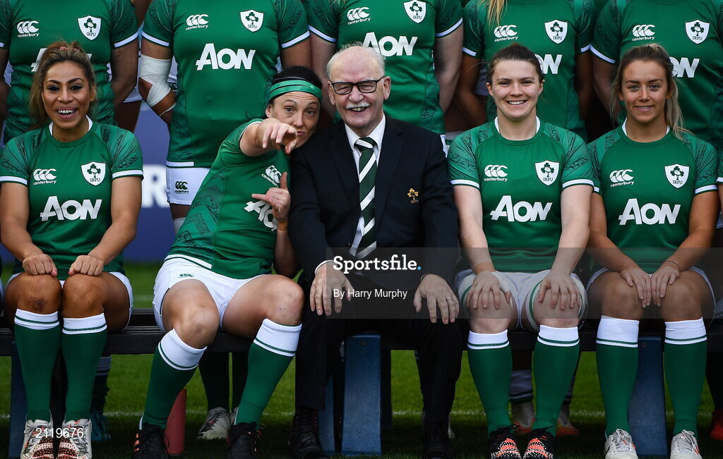 11 November 2021; Lindsay Peat shares a joke with IRFU President Des Kavanagh before the Ireland women's captain's run at RDS Arena in Dublin. Photo by Harry Murphy/Sportsfile