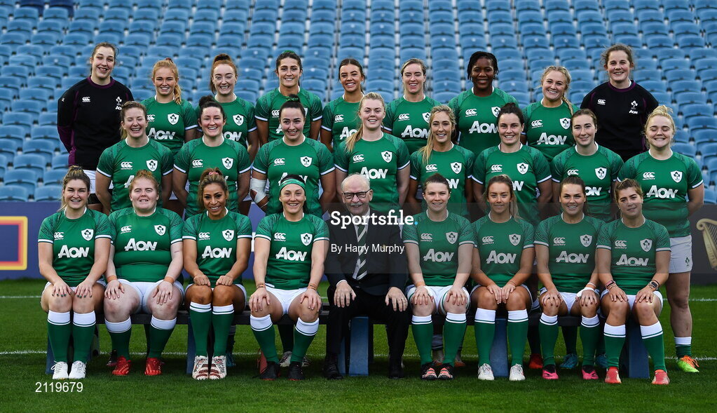 11 November 2021; The Ireland team, with IRFU President Des Kavanagh, before the Ireland women's captain's run at RDS Arena in Dublin. Photo by Harry Murphy/Sportsfile