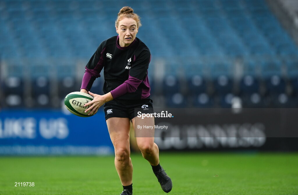 11 November 2021; Laura Sheehan during the Ireland women's captain's run at RDS Arena in Dublin. Photo by Harry Murphy/Sportsfile