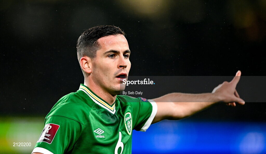 11 November 2021; Josh Cullen of Republic of Ireland during the FIFA World Cup 2022 qualifying group A match between Republic of Ireland and Portugal at the Aviva Stadium in Dublin. Photo by Seb Daly/Sportsfile