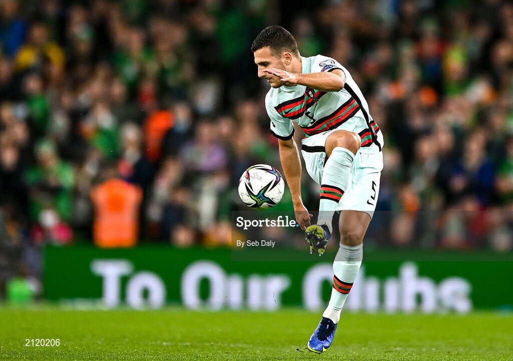 11 November 2021; Diogo Dalot of Portugal during the FIFA World Cup 2022 qualifying group A match between Republic of Ireland and Portugal at the Aviva Stadium in Dublin. Photo by Seb Daly/Sportsfile