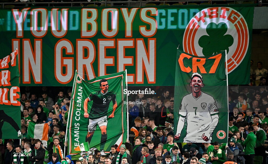 11 November 2021; Republic of Ireland supporters before the FIFA World Cup 2022 qualifying group A match between Republic of Ireland and Portugal at the Aviva Stadium in Dublin. Photo by Seb Daly/Sportsfile