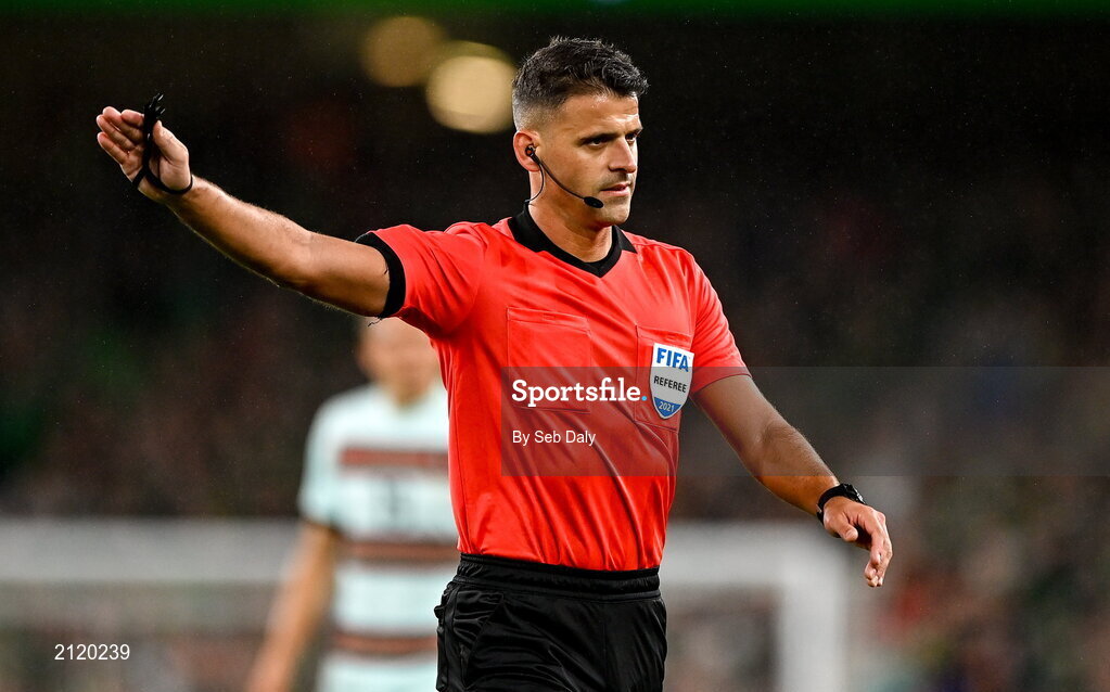 11 November 2021; Referee Jesús Gil Manzano during the FIFA World Cup 2022 qualifying group A match between Republic of Ireland and Portugal at the Aviva Stadium in Dublin. Photo by Seb Daly/Sportsfile