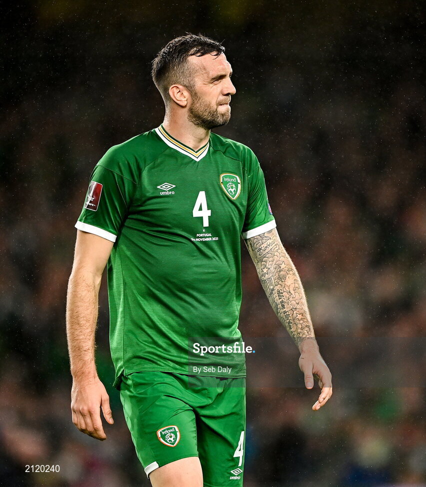 11 November 2021; Shane Duffy of Republic of Ireland during the FIFA World Cup 2022 qualifying group A match between Republic of Ireland and Portugal at the Aviva Stadium in Dublin. Photo by Seb Daly/Sportsfile