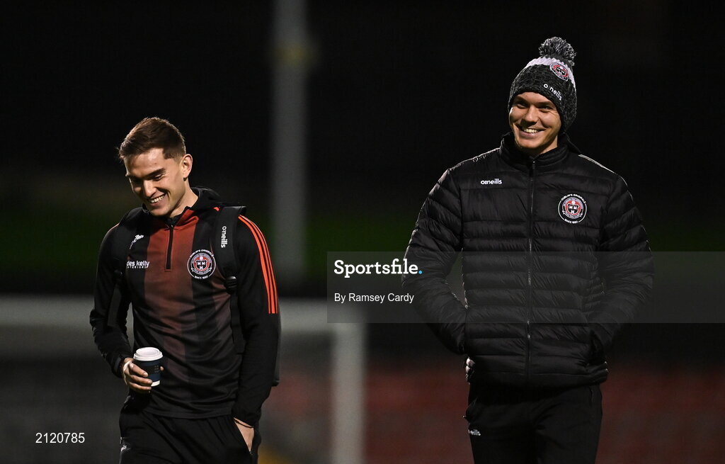 12 November 2021; Anto Breslin, left, and Georgie Kelly of Bohemians before the SSE Airtricity League Premier Division match between Bohemians and Shamrock Rovers at Dalymount Park in Dublin. Photo by Ramsey Cardy/Sportsfile