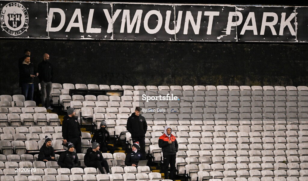 12 November 2021; Bohemians manager Keith Long, bottom right, watches from the stands after being sent off during the SSE Airtricity League Premier Division match between Bohemians and Shamrock Rovers at Dalymount Park in Dublin. Photo by Seb Daly/Sportsfile