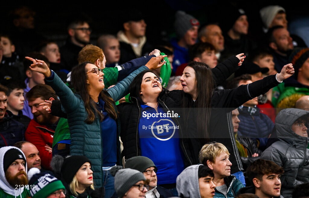 12 November 2021; Northern Ireland supporters during the FIFA World Cup 2022 qualifying group C match between Northern Ireland and Lithuania at National Football Stadium, Windsor Park in Belfast. Photo by David Fitzgerald/Sportsfile