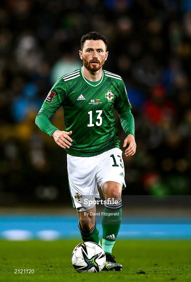 12 November 2021; Corry Evans of Northern Ireland during the FIFA World Cup 2022 qualifying group C match between Northern Ireland and Lithuania at National Football Stadium, Windsor Park in Belfast. Photo by David Fitzgerald/Sportsfile