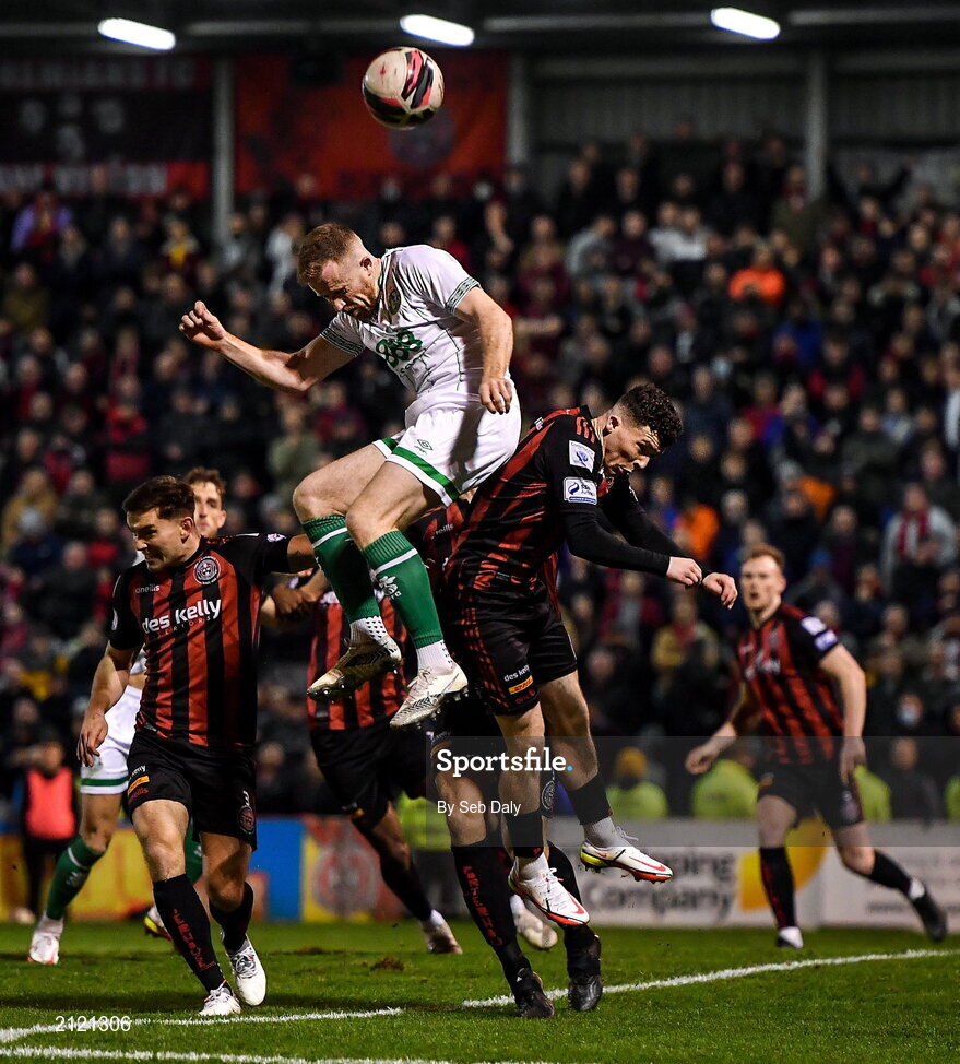 12 November 2021; Sean Hoare of Shamrock Rovers in action against Ali Coote of Bohemians during the SSE Airtricity League Premier Division match between Bohemians and Shamrock Rovers at Dalymount Park in Dublin. Photo by Seb Daly/Sportsfile