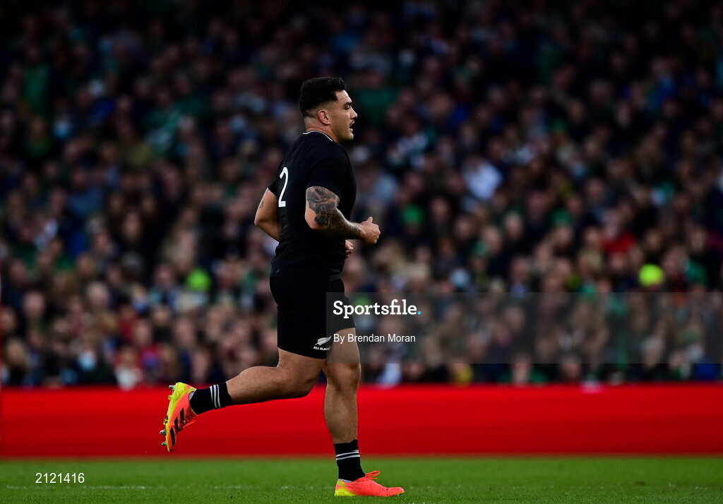 13 November 2021; Codie Taylor of New Zealand leaves the field after receiving a yellow card during the Autumn Nations Series match between Ireland and New Zealand at Aviva Stadium in Dublin. Photo by Brendan Moran/Sportsfile