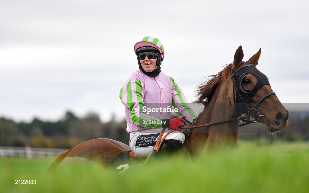 14 November 2021; Jockey Keith Donoghue and Call It Magic inspect Ruby's Double before the Pigsback.com Risk Of Thunder Steeplechase during day two of the Punchestown Winter Festival at Punchestown Racecourse in Kildare. Photo by Seb Daly/Sportsfile