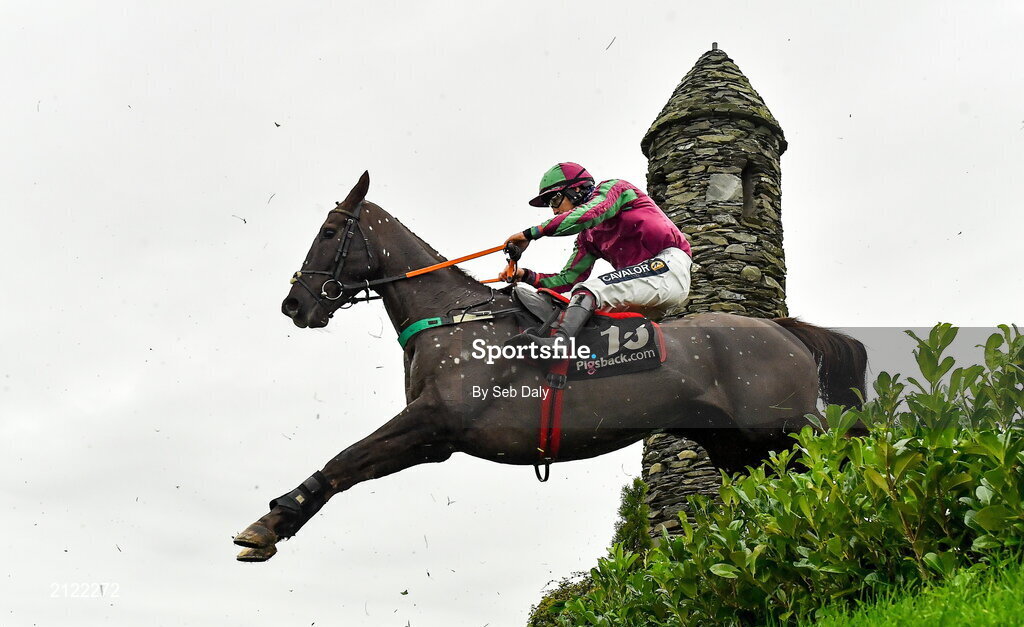 14 November 2021; Michael's Pick, with Conor Orr up, jumps the Glendalough Drop Hedge during the Pigsback.com Risk Of Thunder Steeplechase on day two of the Punchestown Winter Festival at Punchestown Racecourse in Kildare. Photo by Seb Daly/Sportsfile