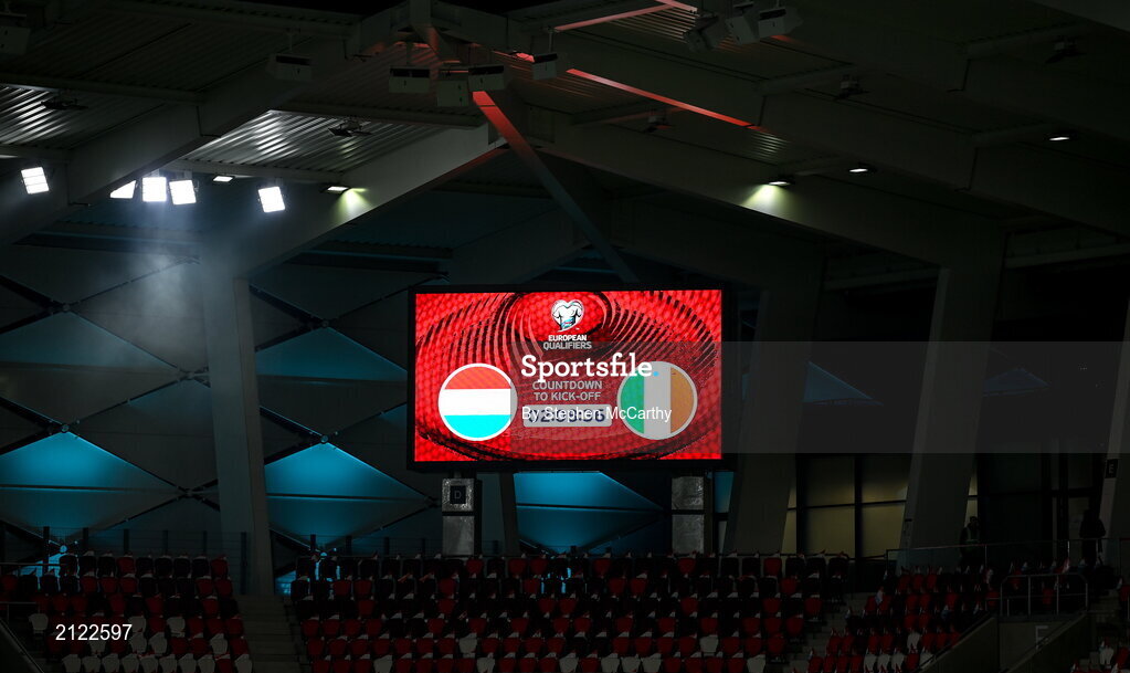 14 November 2021; A general view the big screen before the FIFA World Cup 2022 qualifying group A match between Luxembourg and Republic of Ireland at Stade de Luxembourg in Luxembourg. Photo by Stephen McCarthy/Sportsfile