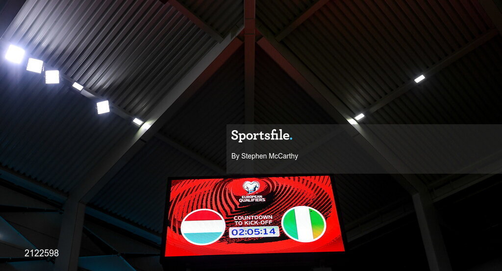14 November 2021; A general view the big screen before the FIFA World Cup 2022 qualifying group A match between Luxembourg and Republic of Ireland at Stade de Luxembourg in Luxembourg. Photo by Stephen McCarthy/Sportsfile