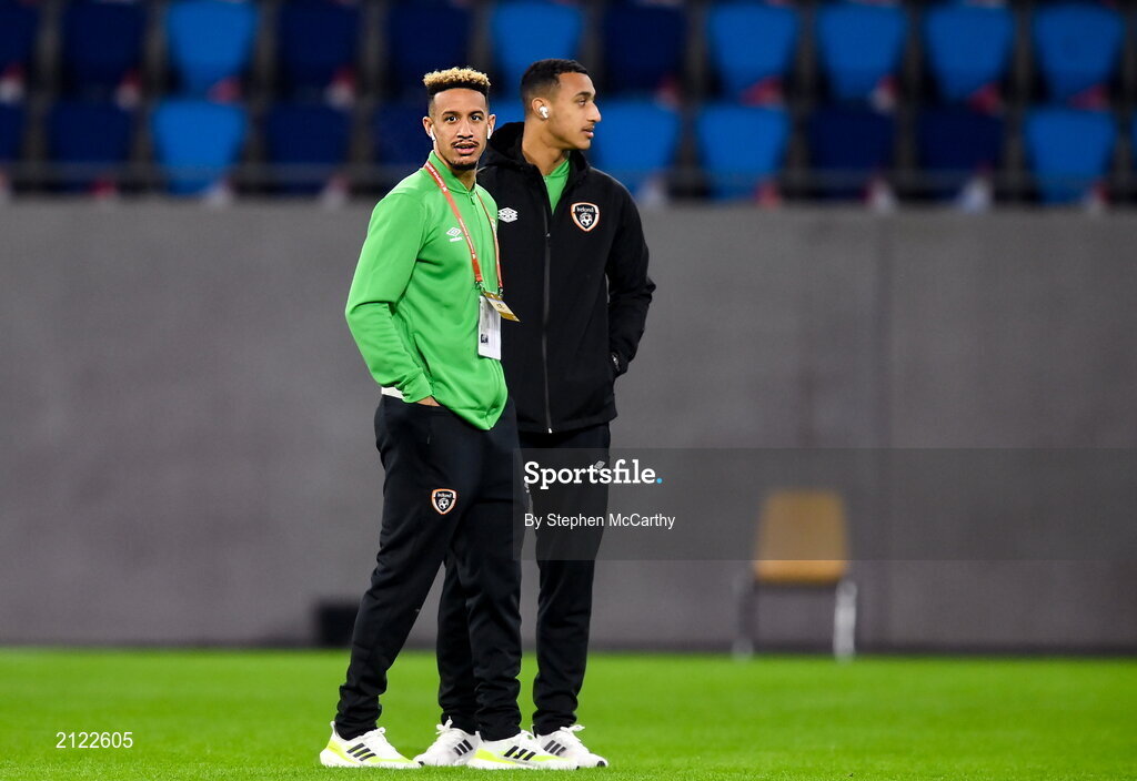 14 November 2021; Republic of Ireland players, Callum Robinson, left, and Adam Idah walk the pitch before the FIFA World Cup 2022 qualifying group A match between Luxembourg and Republic of Ireland at Stade de Luxembourg in Luxembourg. Photo by Stephen McCarthy/Sportsfile