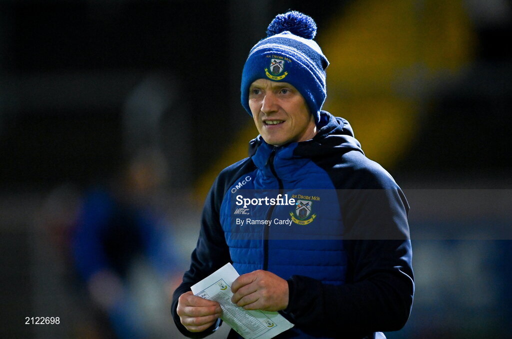 14 November 2021; Dromore manager Colm McCullagh during the Tyrone County Senior Club Football Championship Final match between Coalisland and Dromore at O’Neills Healy Park in Omagh, Tyrone. Photo by Ramsey Cardy/Sportsfile