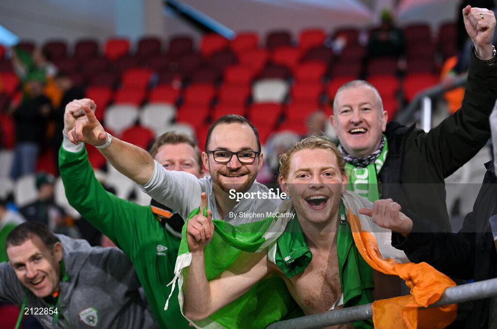 14 November 2021; Republic of Ireland supporters after the FIFA World Cup 2022 qualifying group A match between Luxembourg and Republic of Ireland at Stade de Luxembourg in Luxembourg. Photo by Stephen McCarthy/Sportsfile