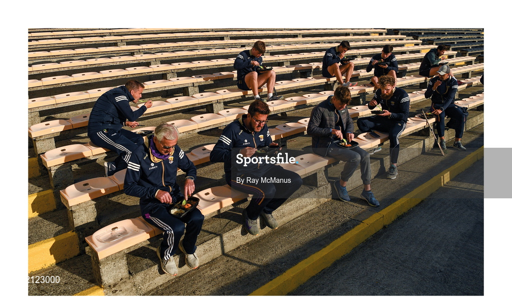 26 June 2021; Only quiet when eating. The Wexford hurlers and backroom members are a picture of concentration fuelling up in Kilkenny after defeating Laois. It’s a scene that highlights the measures team managements and county boards must take in order to provide meals for players during a pandemic. Photo by Ray McManus/Sportsfile This image may be reproduced free of charge when used in conjunction with a review of the book "A Season of Sundays 2020". All other usage © Sportsfile