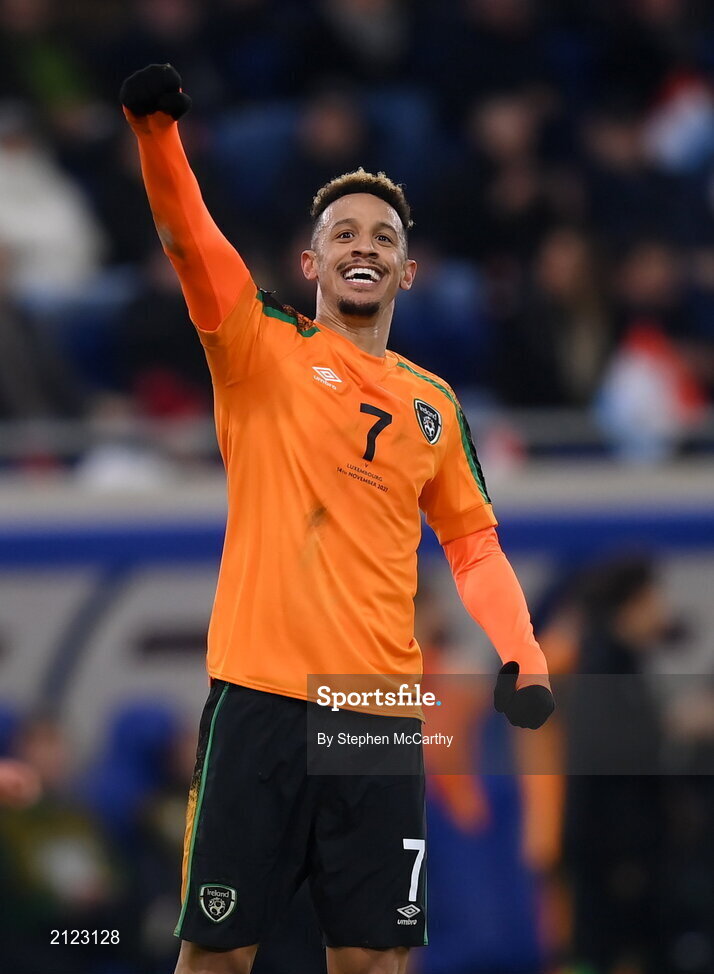 14 November 2021; Callum Robinson of Republic of Ireland celebrates after scoring his side's third goal during the FIFA World Cup 2022 qualifying group A match between Luxembourg and Republic of Ireland at Stade de Luxembourg in Luxembourg. Photo by Stephen McCarthy/Sportsfile