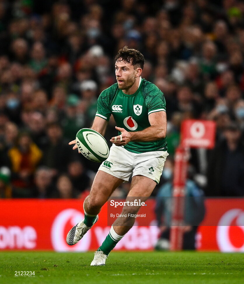 13 November 2021; Hugo Keenan of Ireland during the Autumn Nations Series match between Ireland and New Zealand at Aviva Stadium in Dublin. Photo by David Fitzgerald/Sportsfile