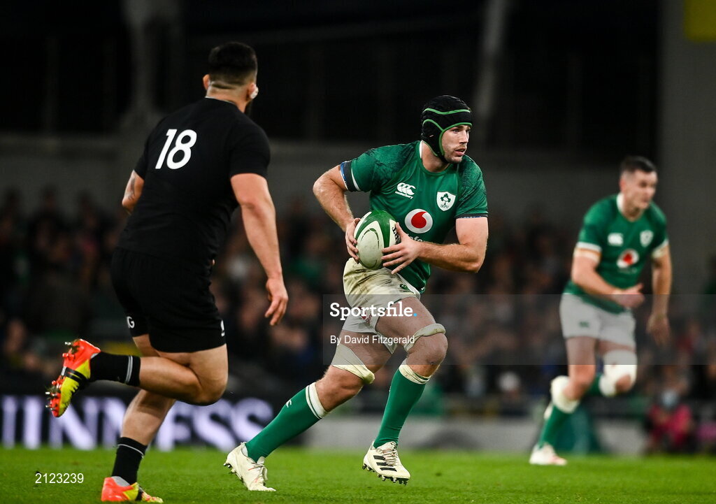 13 November 2021; Caelan Doris of Ireland during the Autumn Nations Series match between Ireland and New Zealand at Aviva Stadium in Dublin. Photo by David Fitzgerald/Sportsfile