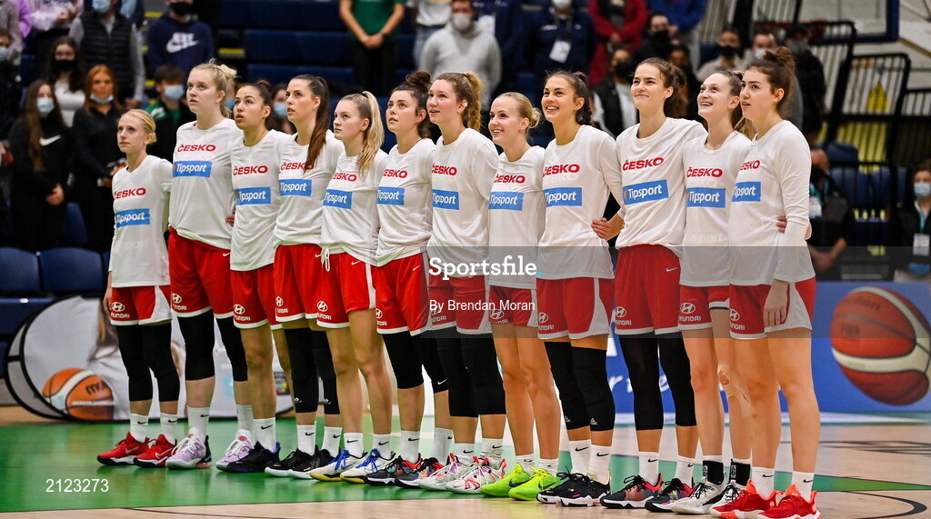 14 November 2021; The Czech Republic team before the FIBA Women's EuroBasket 2023 Qualifier Group I match between Ireland and Czech Republic at National Basketball Arena in Tallaght, Dublin. Photo by Brendan Moran/Sportsfile