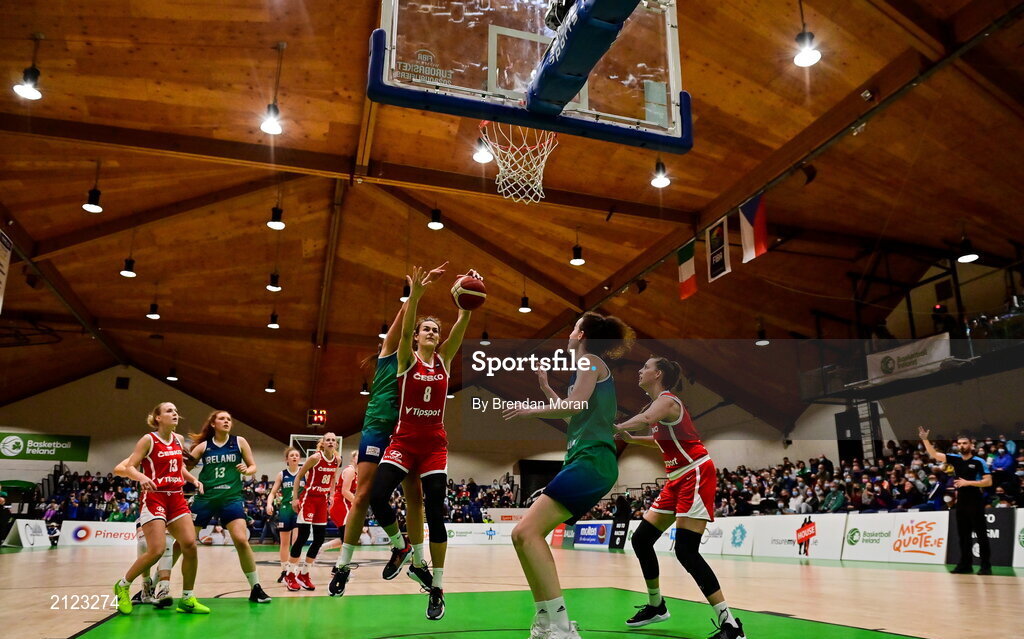 14 November 2021; Veronika Vorackova of Czech Republic in action against Aine O'Connor of Ireland during the FIBA Women's EuroBasket 2023 Qualifier Group I match between Ireland and Czech Republic at National Basketball Arena in Tallaght, Dublin. Photo by Brendan Moran/Sportsfile