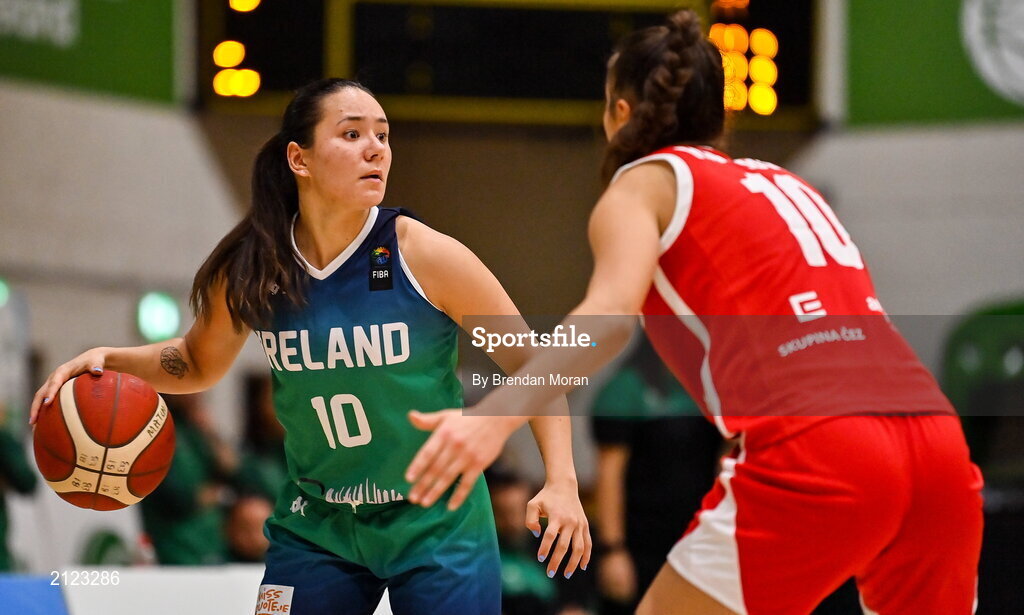14 November 2021; Anna Kelly of Ireland in action against Eliska Hamzova of Czech Republic during the FIBA Women's EuroBasket 2023 Qualifier Group I match between Ireland and Czech Republic at National Basketball Arena in Tallaght, Dublin. Photo by Brendan Moran/Sportsfile