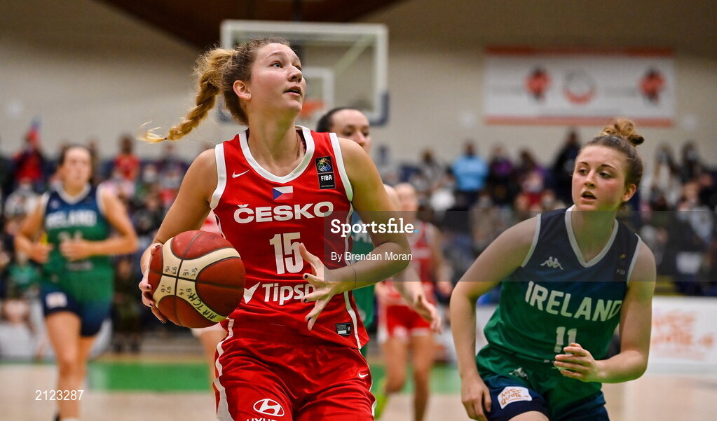 14 November 2021; Michaela Krejzova of Czech Republic in action against Edel Thornton of Ireland during the FIBA Women's EuroBasket 2023 Qualifier Group I match between Ireland and Czech Republic at National Basketball Arena in Tallaght, Dublin. Photo by Brendan Moran/Sportsfile