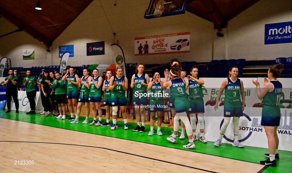 14 November 2021; Ireland joint team captain Grainne Dwyer is introduced to the crowd before the FIBA Women's EuroBasket 2023 Qualifier Group I match between Ireland and Czech Republic at National Basketball Arena in Tallaght, Dublin. Photo by Brendan Moran/Sportsfile