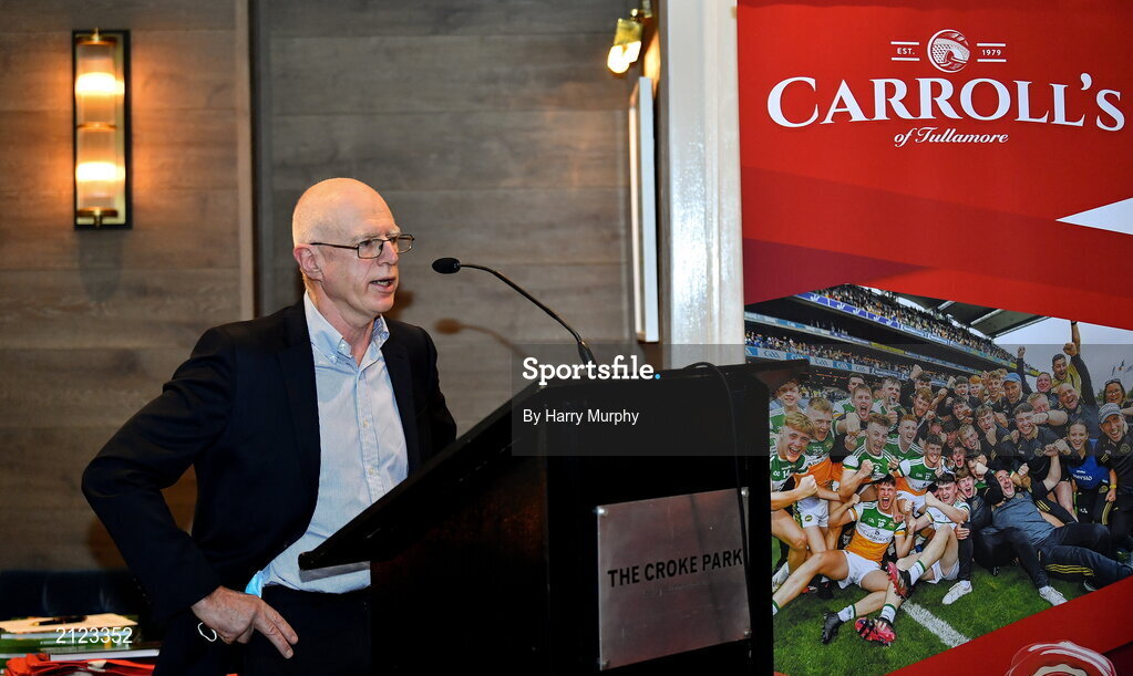 15 November 2021; Carroll Cuisine Chief Operating Officer John Comerford speaks at the launch of A Season of Sundays 2021 at Croke Park Hotel in Dublin. Photo by Harry Murphy/Sportsfile