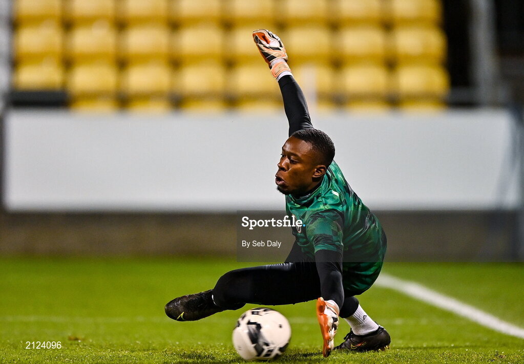 16 November 2021; Republic of Ireland goalkeeper David Odumosu before the UEFA European U21 Championship qualifying group A match between Republic of Ireland and Sweden at Tallaght Stadium in Dublin. Photo by Seb Daly/Sportsfile